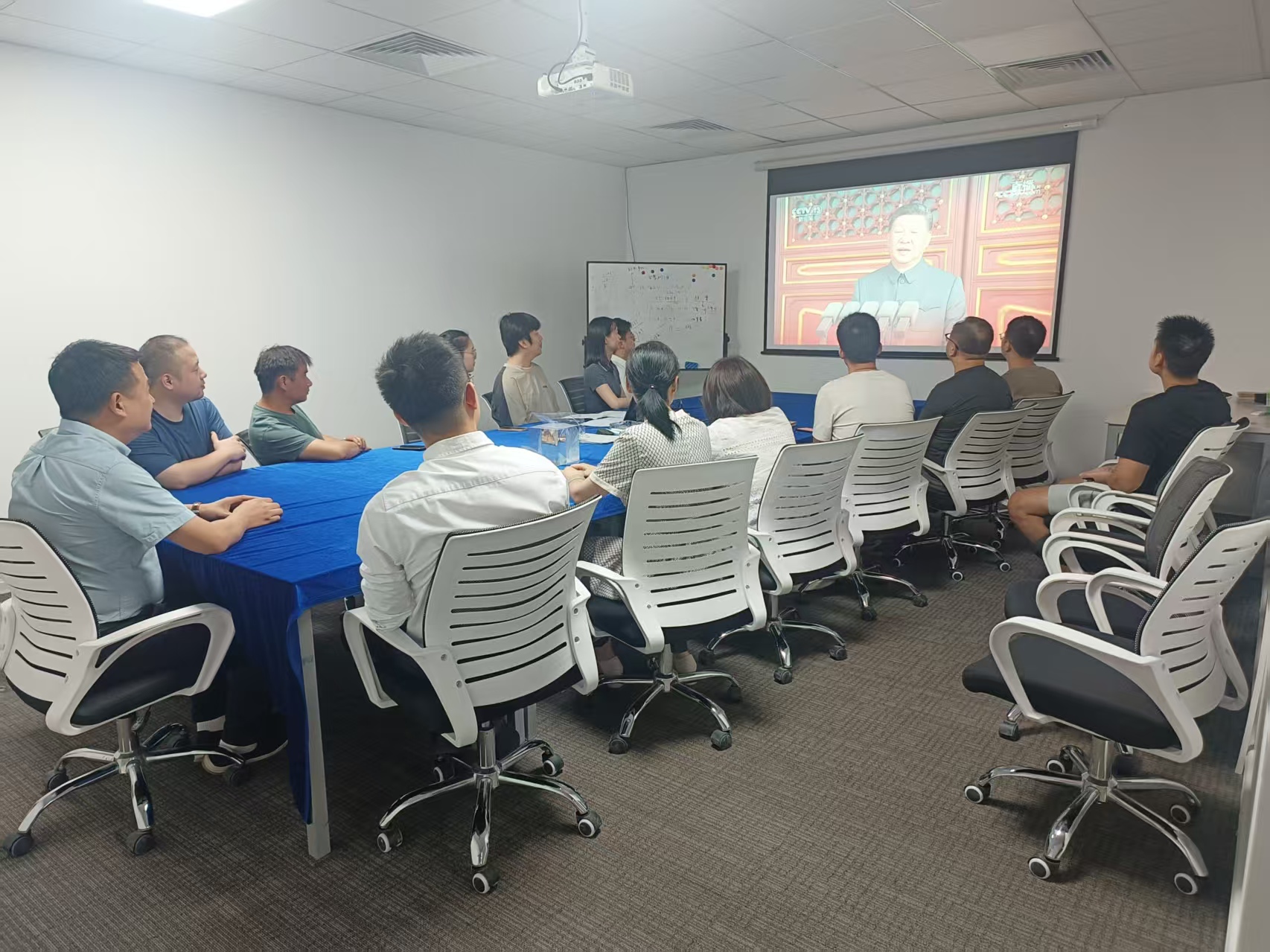 上午9時,大家準時聚集在各公司的會議室,自發整理好衣襟,眼神中滿是期待與肅穆。當直播畫面切到天安門廣場,鮮艷的五星紅旗在晨光中冉冉升起,激昂的歌聲里,是跨越代際的信仰傳承,是屬于京蘭人的集體共鳴。?